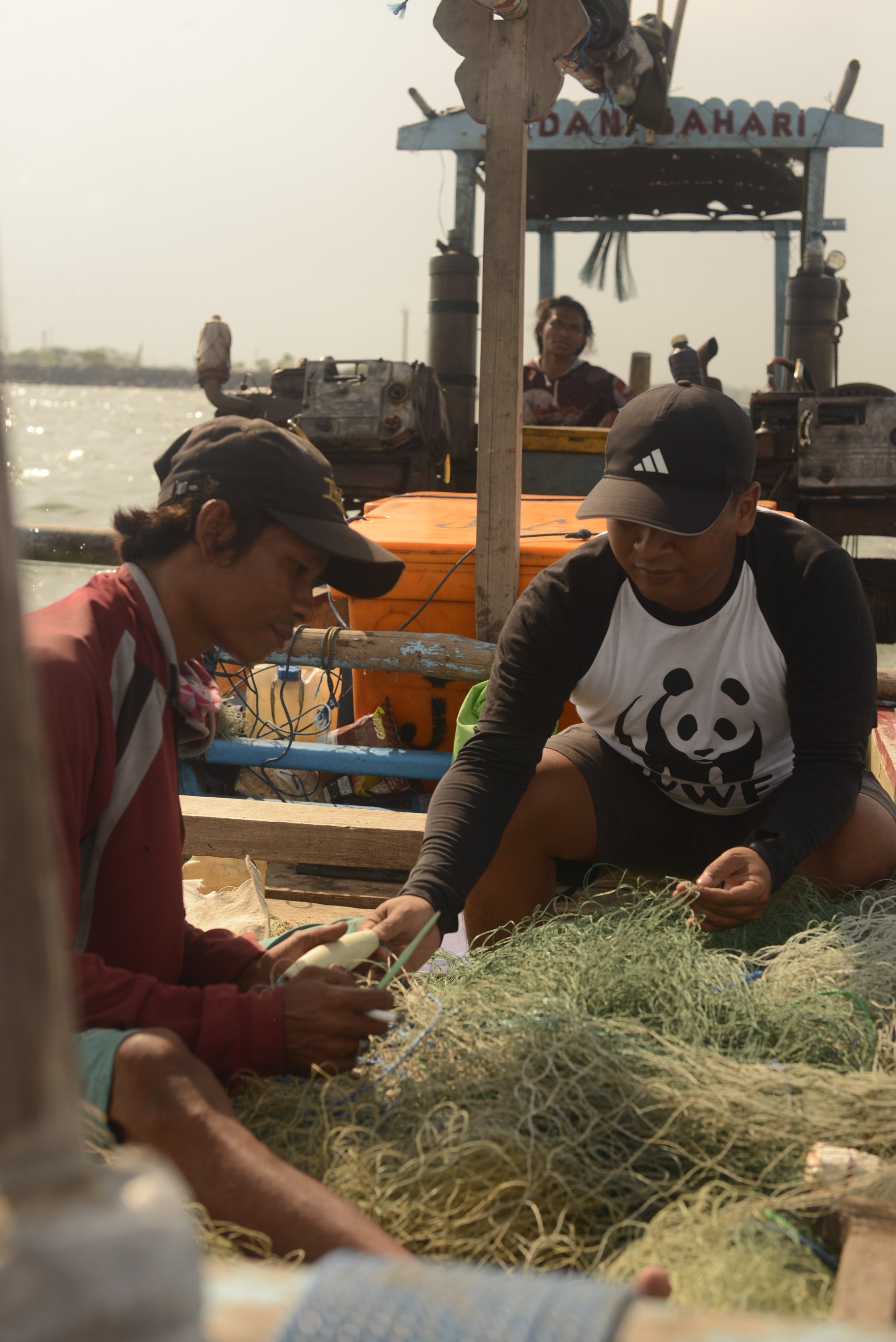 The preparation, inspection and repair of gillnets in Muncar, East Java. This is usually carried out while fishers are en route to the fishing grounds. Photo: WWF Indonesia / Wiliyan Fitranto Ardi