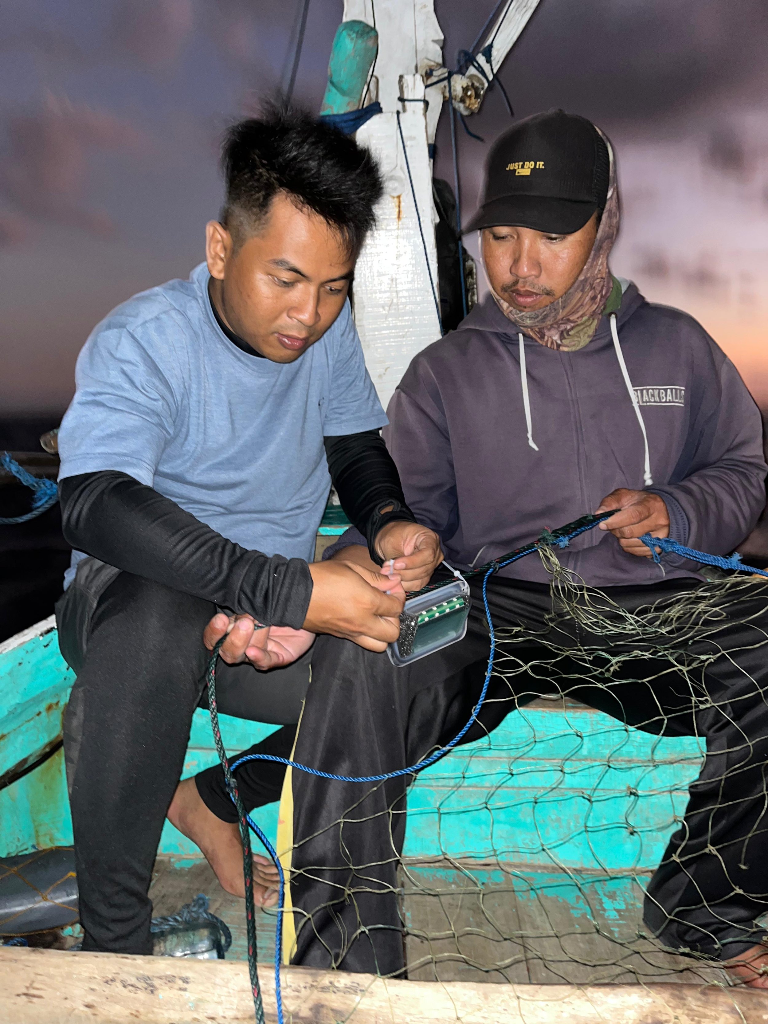 Researchers in 2024 tested whether gillnets fitted with acrylic balls affected how much Atlantic cod fishers off the Western Baltic Sea were catching. They found no significant difference in target catch between gillnets with acrylic balls and gillnets without. This is an essential factor if we want fishers to adopt this measure. Ranny is working with scientists and fishers in the Bali Strait, Indonesia to test the acrylic balls.